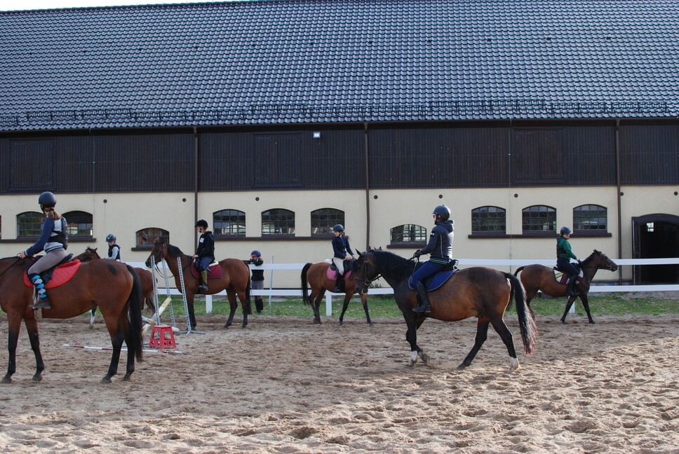Koniecznie zabierz- spodnie do jazdy konnej, buty do jazdy konnej, kask i kamizelkę bezpieczeństwa (jeśli posiadasz), rękawiczki do jazdy konnej, sportowe rzeczy i obuwie, w tym dres, getry, okrycie przeciwdeszczowe, strój kąpielowy, ręcznik.